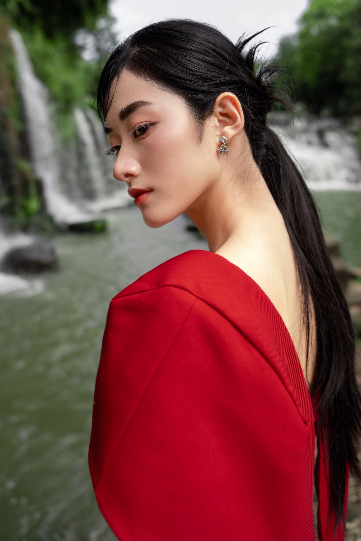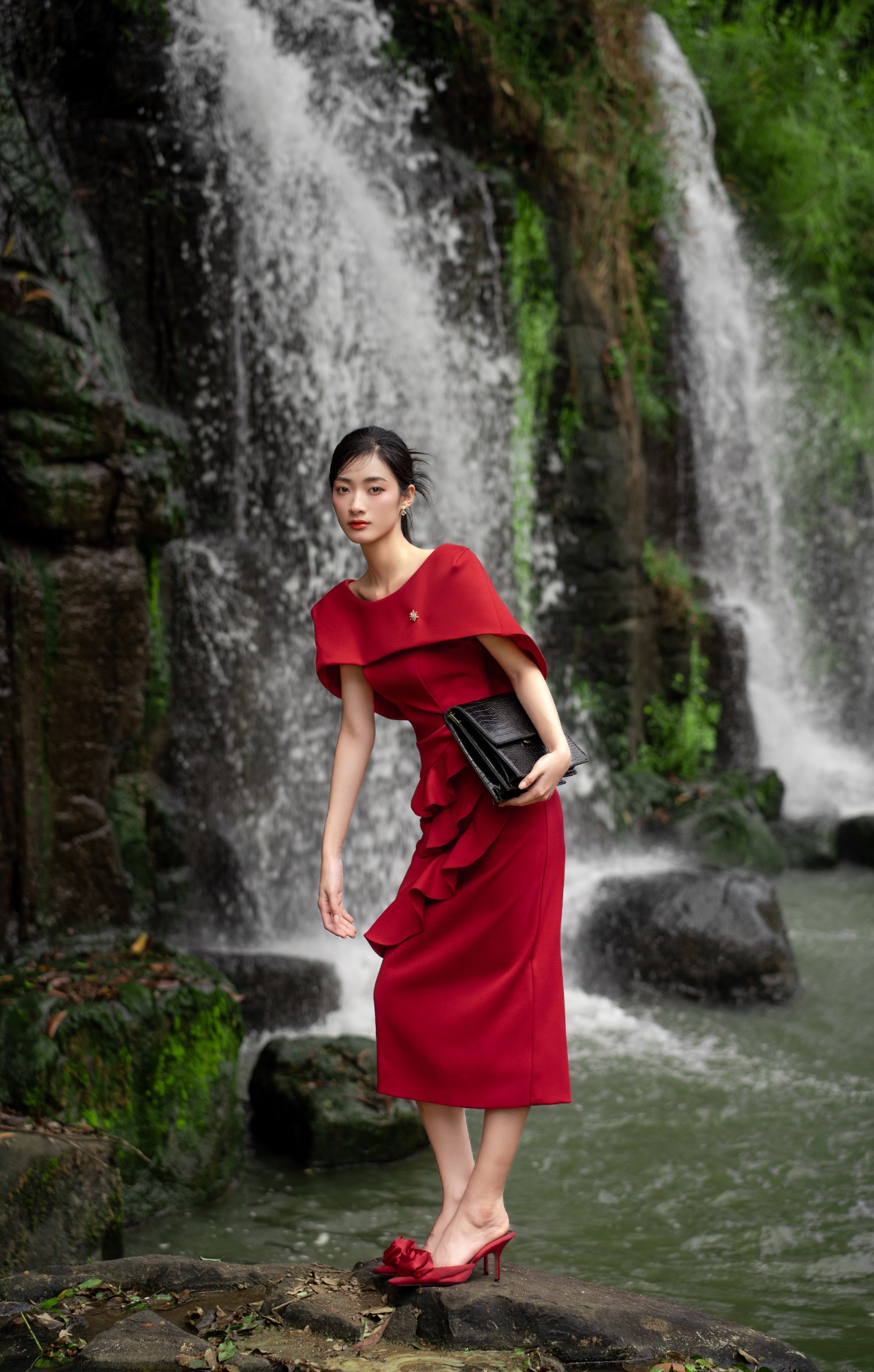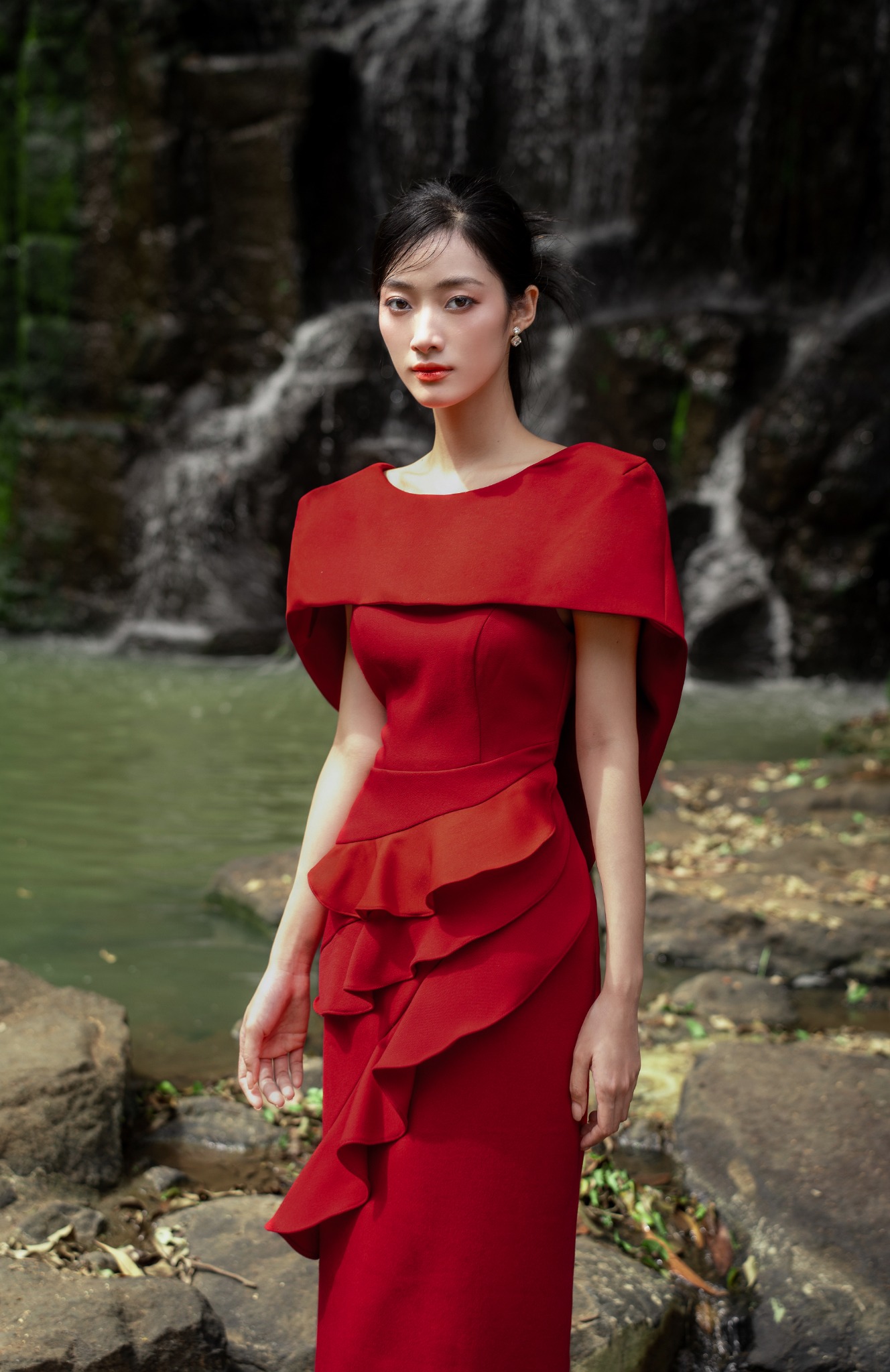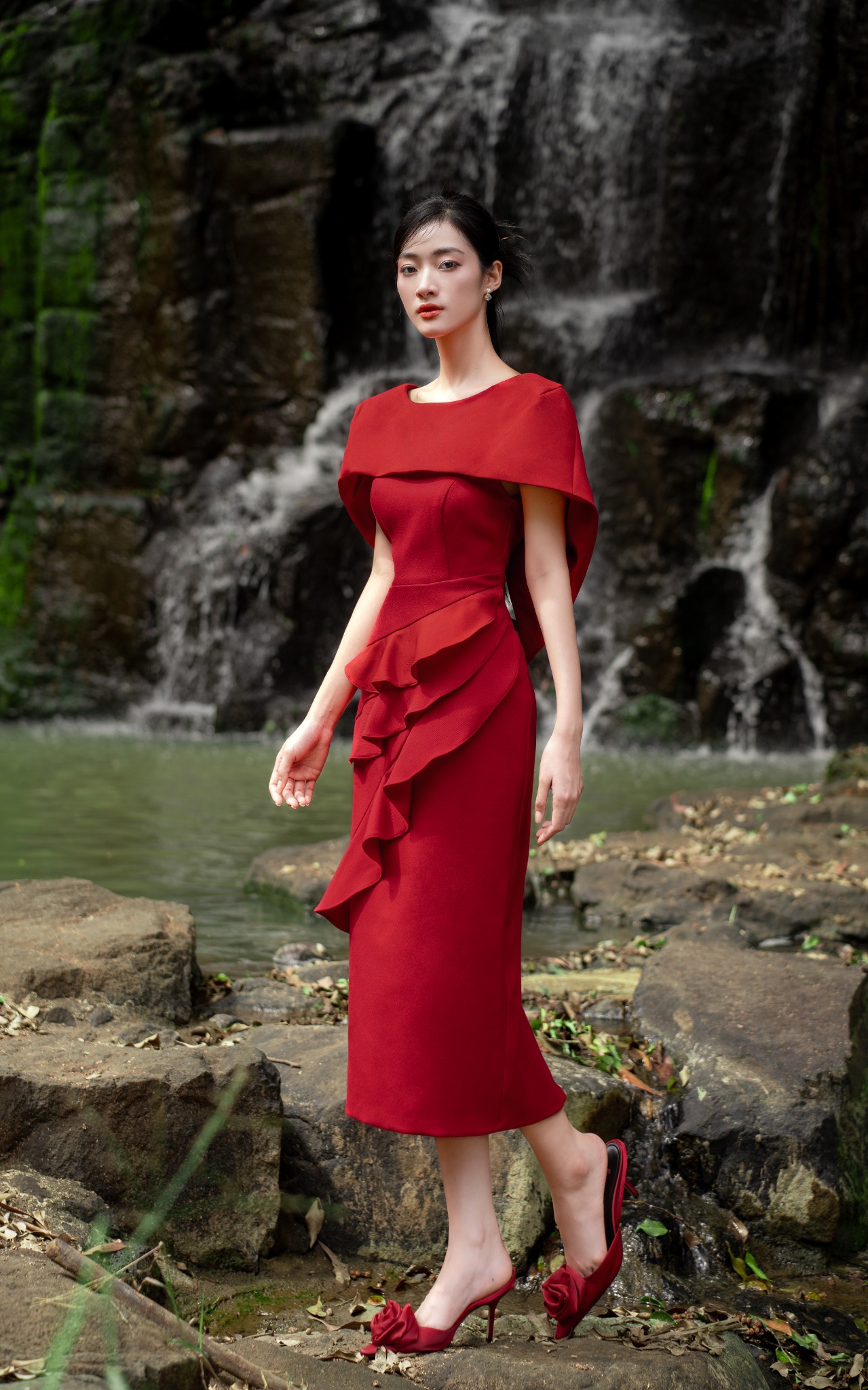Đầm sóng nước phối choàng vai