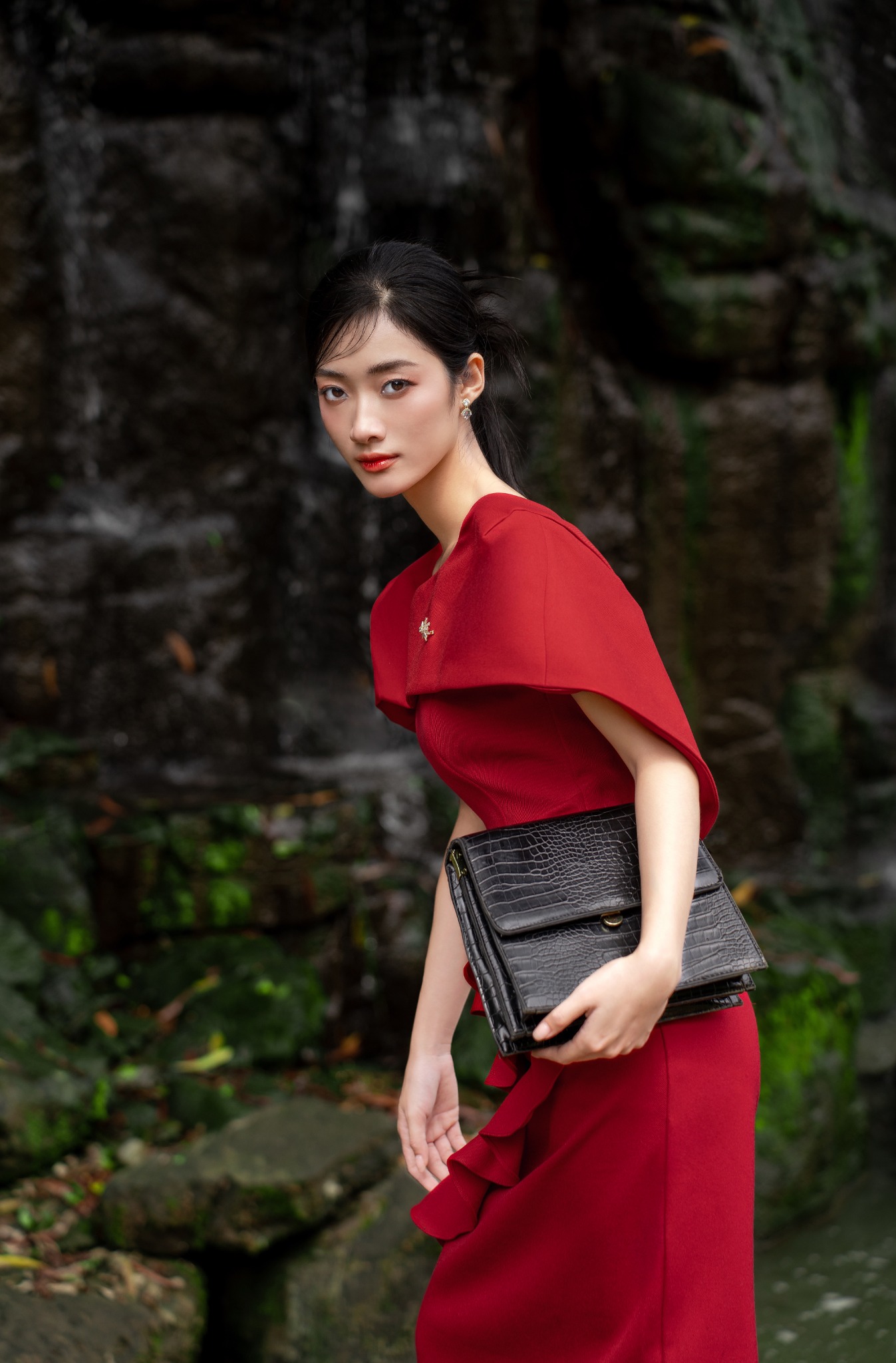 Thiết kế đầm form bút chì được phối chi tiết choàng vai cách điệu tạo hình cầu vai ngang, thân đầm được tạo hình dài bèo sóng nước dáng xéo kinh điển của nhà Bely. Chất liệu Kaki cao cấp dày dặn đứng form mà vẫn đủ độ thướt tha uyển chuyển.