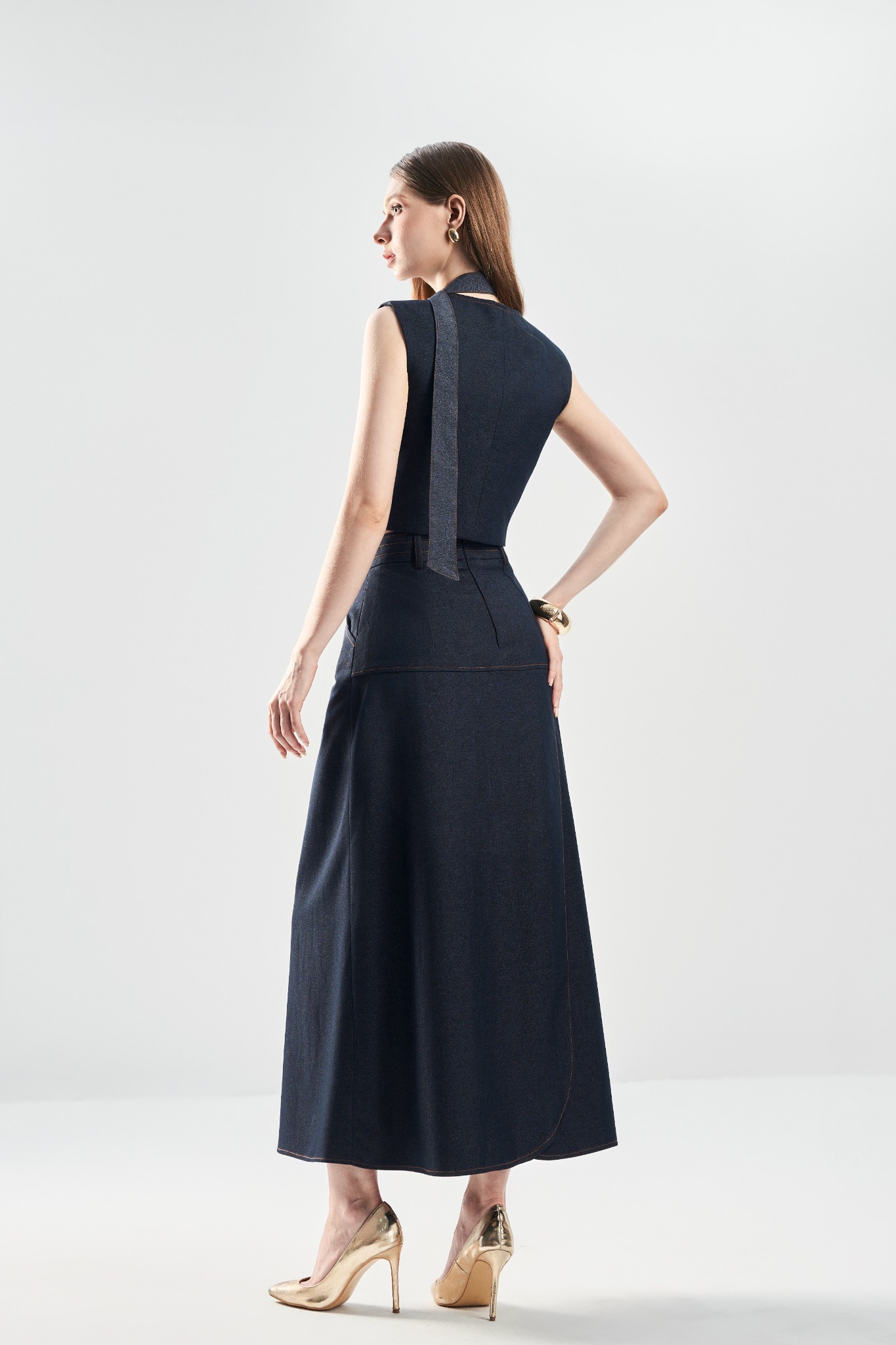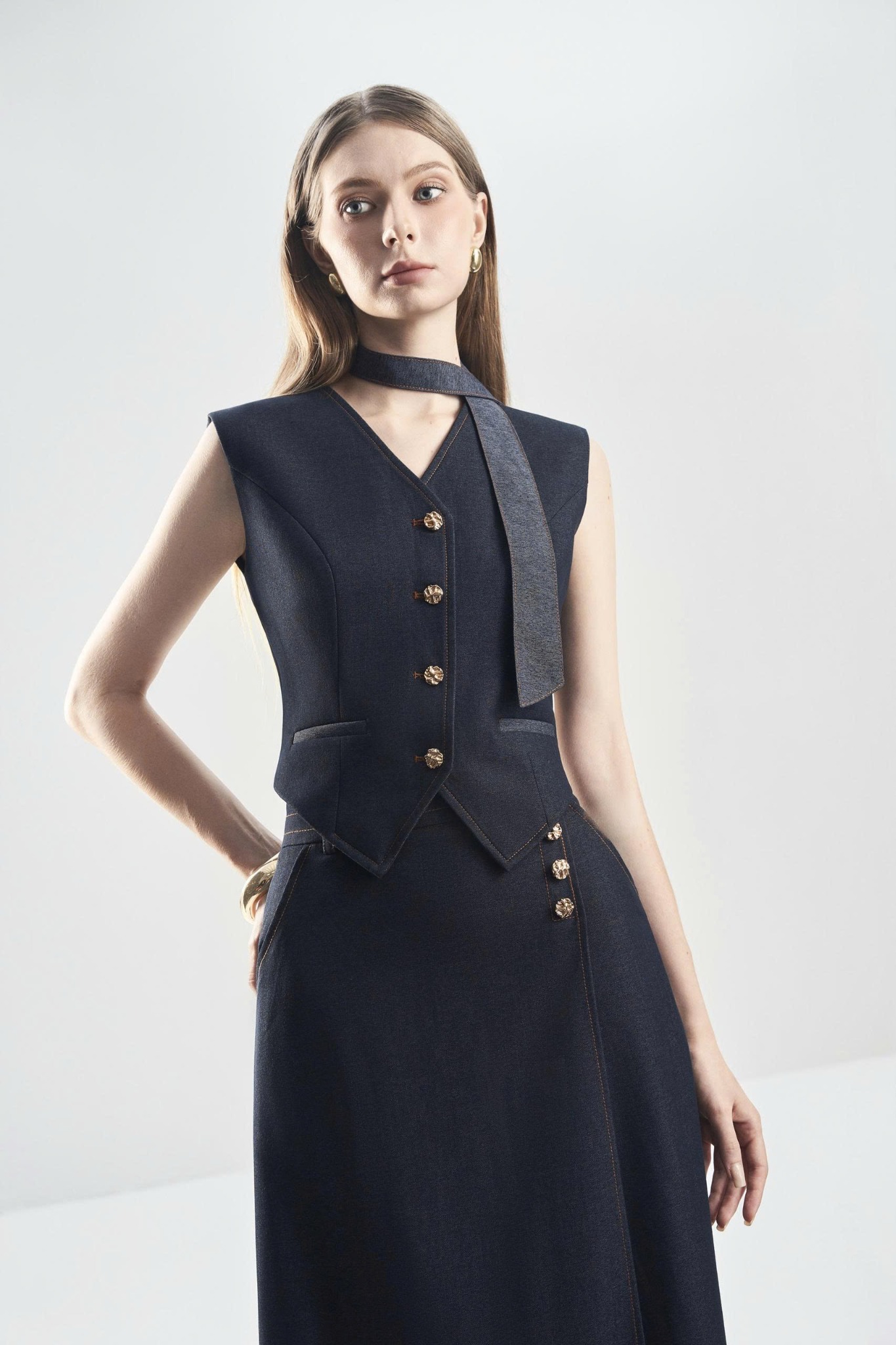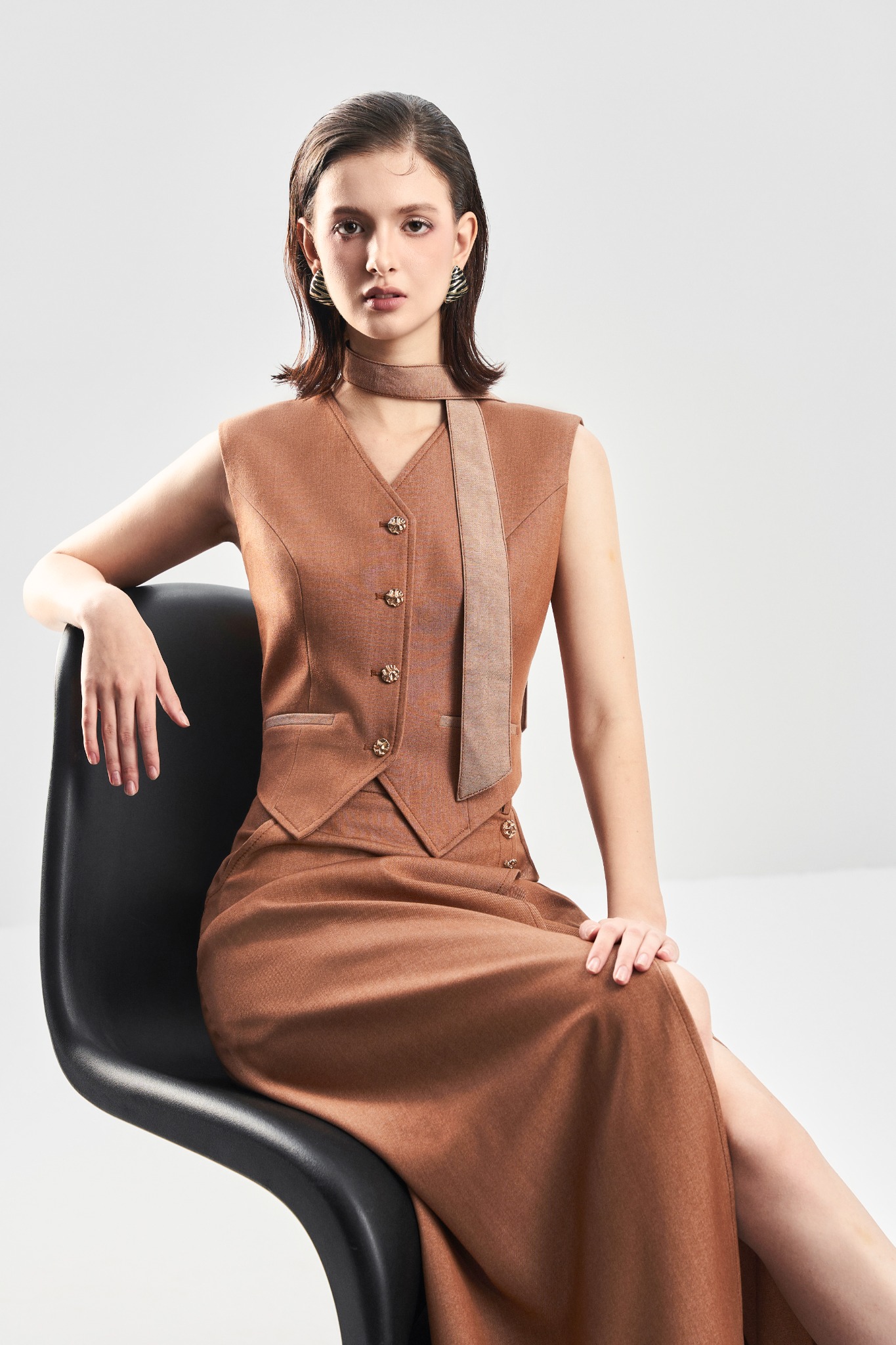 Gile V-Neck Áo vest ghi lê cổ tim với hàng khuy đơn tạo điểm nhấn tối giản và thanh lịch. Thiết kế 2 lớp giúp phom đứng dáng, mang lại cảm giác gọn gàng và dễ phối trong nhiều phong cách.